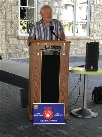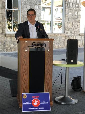 June 30 2022 is World Day Against Human Trafficking. Our Rotary Club has started a small -but mighty! - committee to bring awareness to the serious issue of human trafficking in Canada, Ontario and yes even Guelph. In partnership with Hammond Power Solutions and City of Guelph we had our first Flag Raising Ceremony on July 29 2022 at Guelph City Hall. Guelph Mayor Cam Guthrie and Hammond Power Solutions CEO Bill Hammond both spoke at the Flag Raising Ceremony.